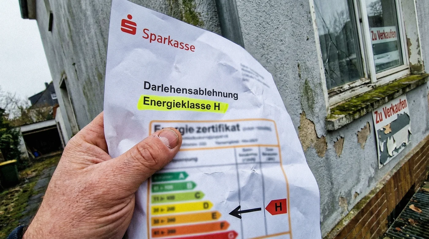 | Der Schnäppchenjäger | Kaufpreis < 200.000€, Energieklasse H, kaum Rücklagen für Sanierung. | Nahe Null. Banken sehen das Kreditausfallrisiko durch Wertverlust als zu hoch an. |